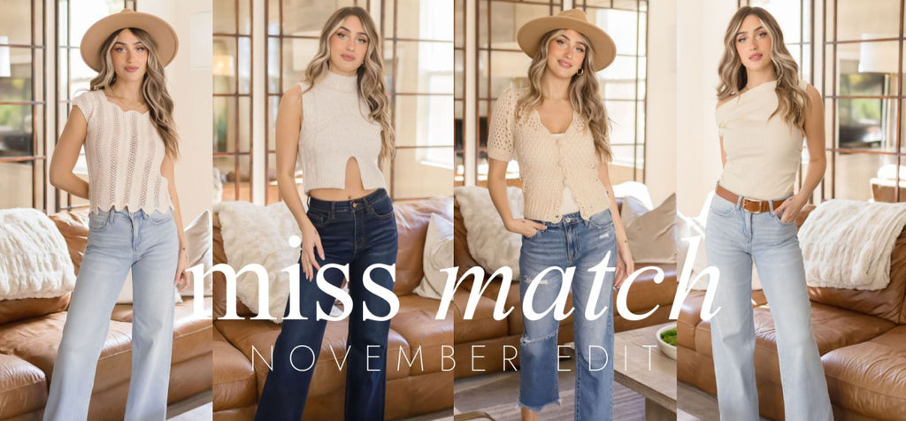 November is here, and with it comes the cozy allure of fall, the promise of upcoming winter, and the perfect opportunity to update your wardrobe for the season. As the temperature dips, there's no better time to embrace warm tones, soft textures, and stylish layers. If you're looking for a one-stop online boutique that offers everything you need to stay on-trend and cozy this season, look no further than Miss Match. With our carefully curated November Edit, we bring you fashion-forward pieces designed to keep you stylish and snug all month long. Whether you’re gearing up for fall gatherings or cozy winter nights, our online boutique has everything you need to look fabulous and feel comfortable no matter where you're shopping from.
