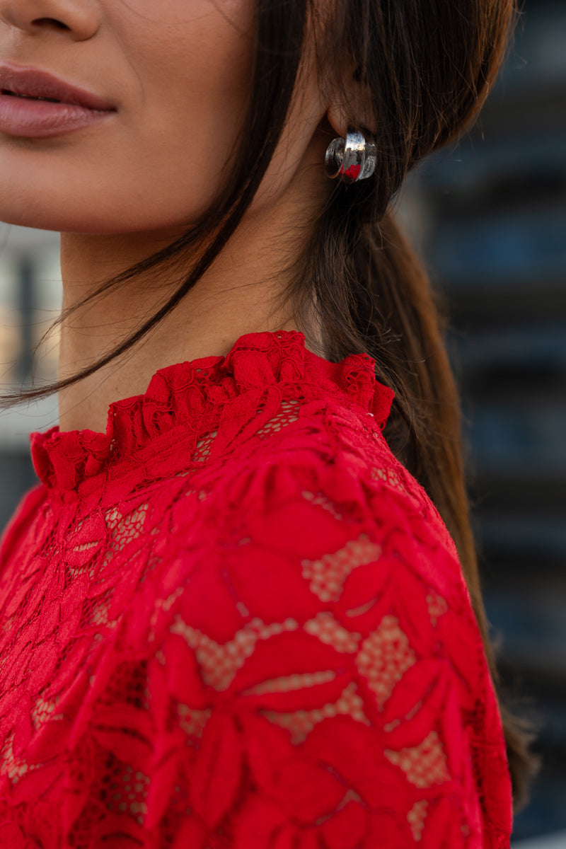 Waitlist 4/15 • Valerie Long Balloon Sleeve Floral Lace Top Red
