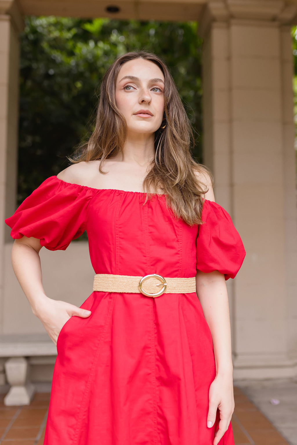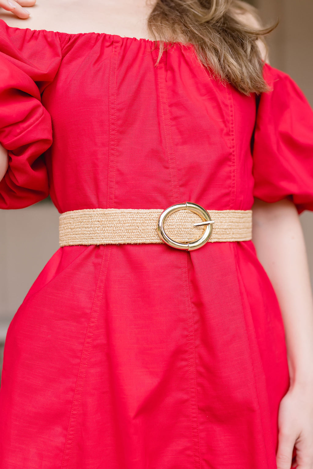 Tessa Gold Buckle Straw Waist Belt Taupe