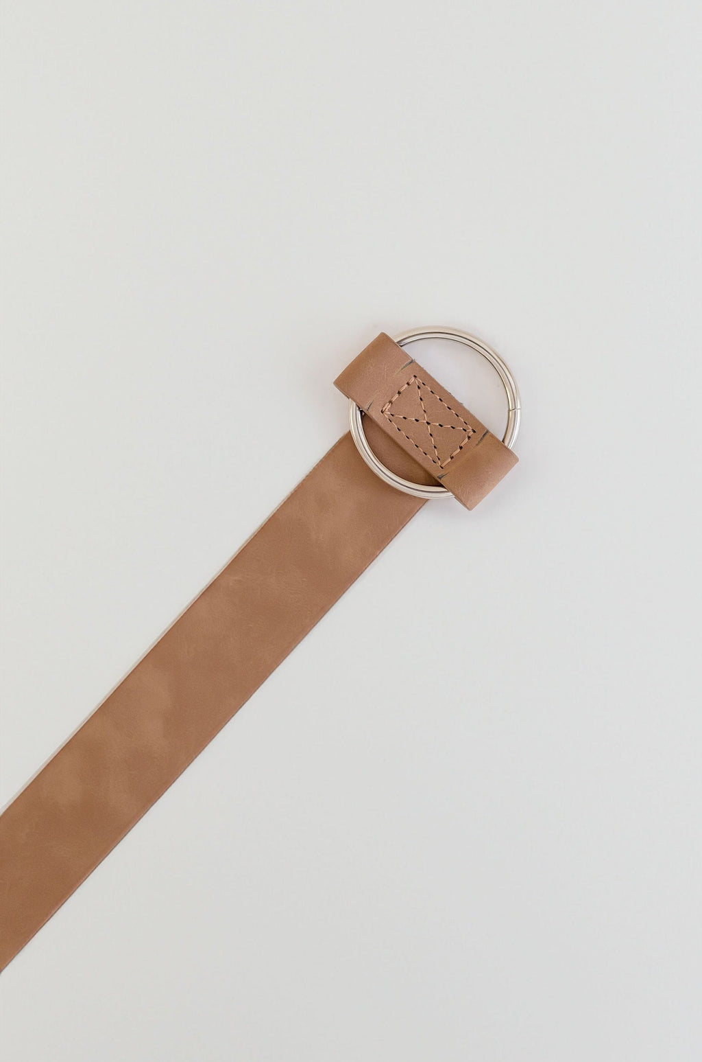 Mckayla Metal Ring Buckle Faux Leather Belt Taupe
