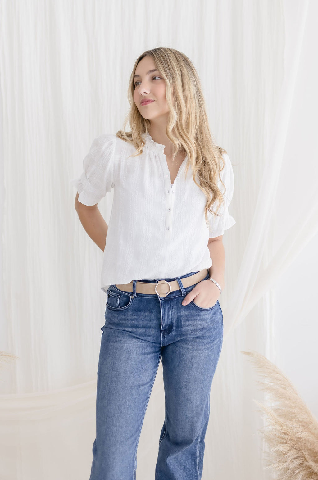 Morgan Oval Metal Buckle Vegan Leather Belt White