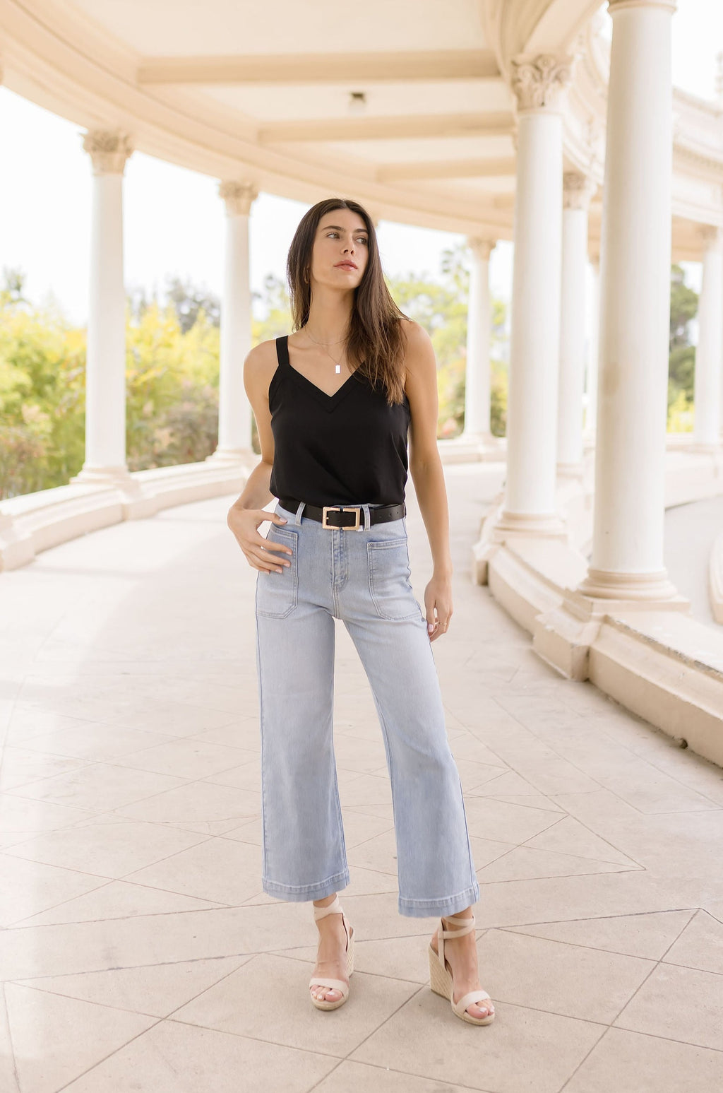 Julia Square Metal Buckle Vegan Leather Belt Black