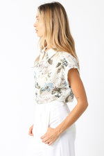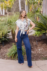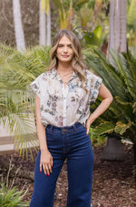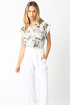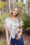 Waitlist 1/25 • Jess Sleeveless Button Down Tropical Print Top Taupe