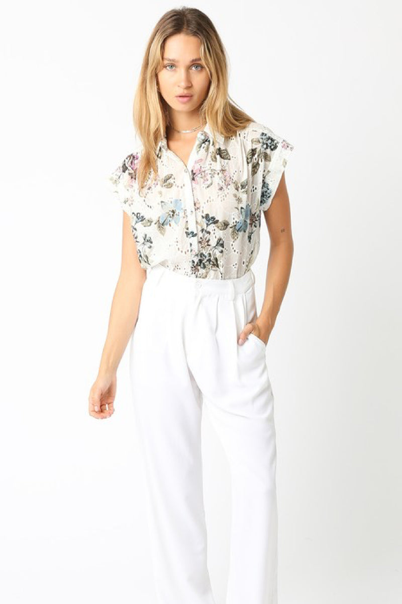 Waitlist 2/25 • Dorian Short Sleeve Button Down Cut Out Top Ivory