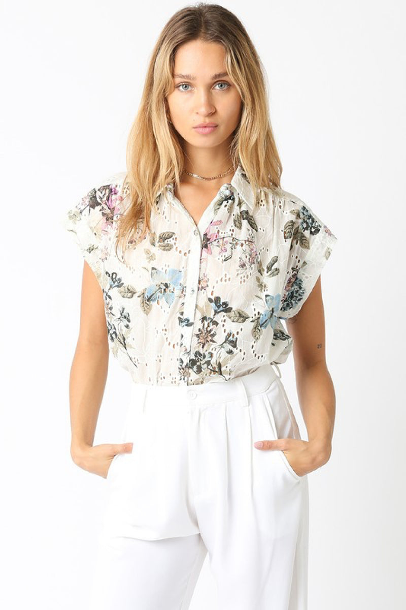 Waitlist 1/7 • Rhiannon Long Sleeve Button Down Floral Print Woven Top Ivory