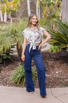 Sloan Long Sleeve Button Down Floral Print Top Blue