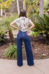 Anne Long Sleeve Corset Floral Print Crop Top Navy