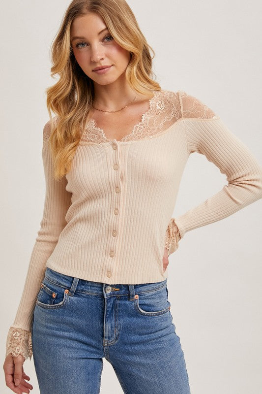 Waitlist 1/7 • Mindy Long Sleeve Button Down Eyelet Knit Top Cream