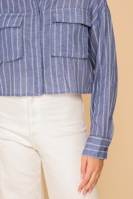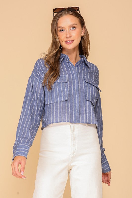 Phoebe Long Sleeve Button Down Satin Crop Top Red