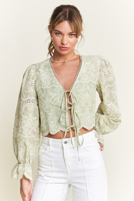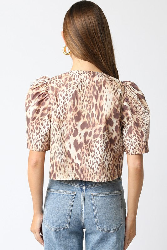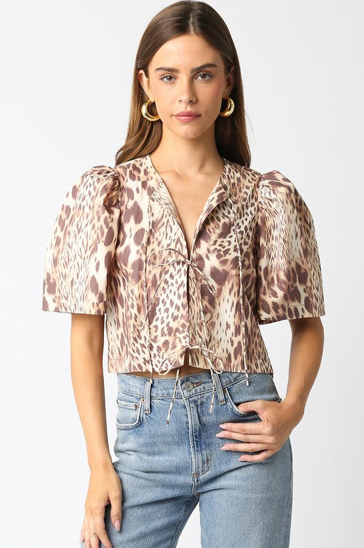 Waitlist 1/28 • Trina Long Sleeve Tropical Print Crop Top Khaki