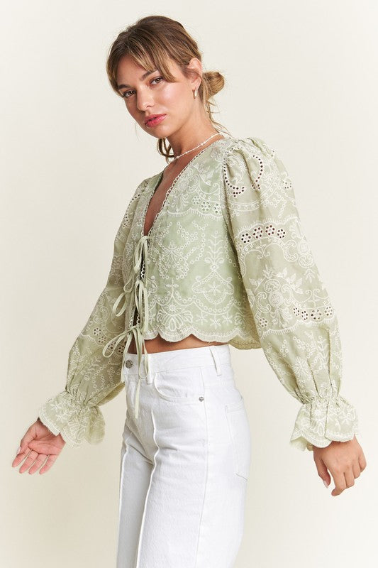 Anne Long Sleeve Corset Floral Print Crop Top Navy