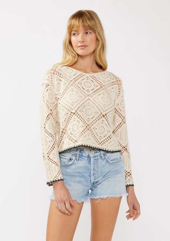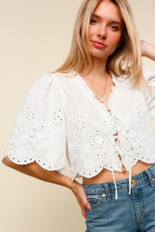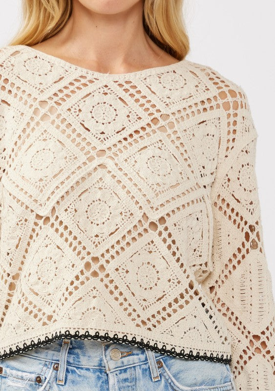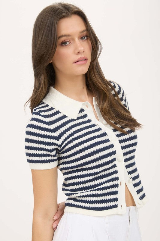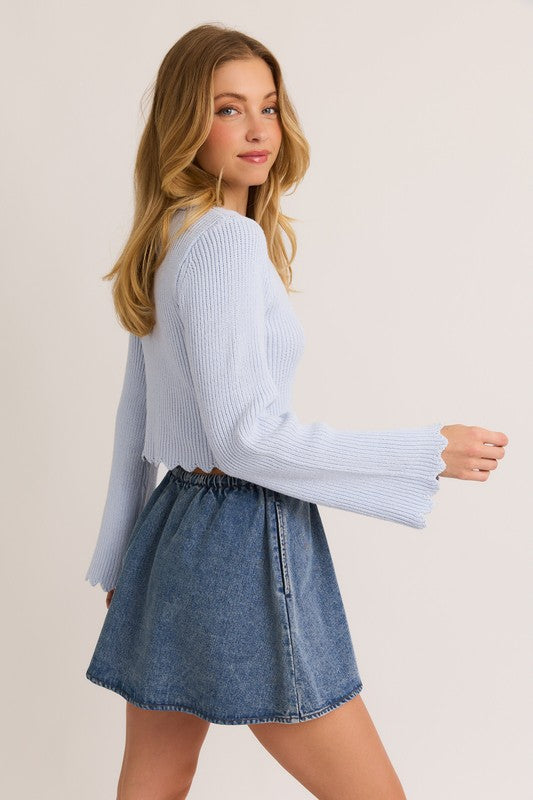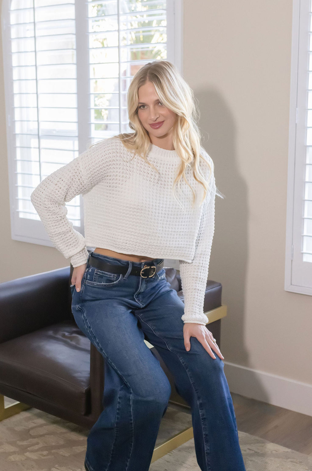 Lizbeth Long Sleeve Button Down Crop Cardigan Ivory