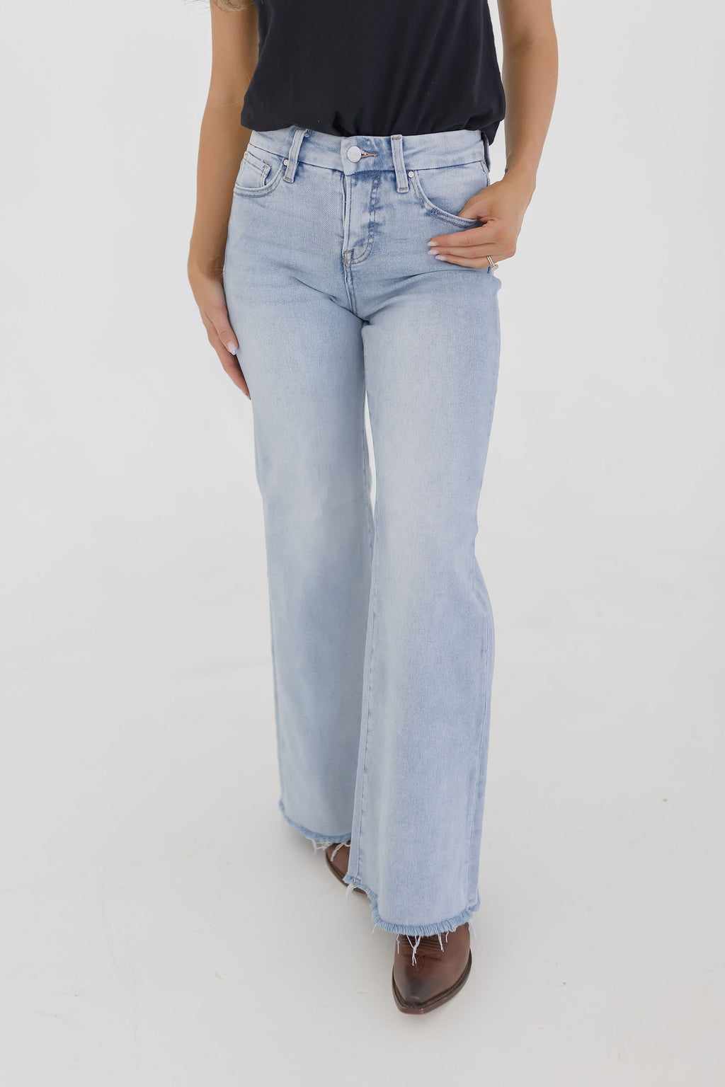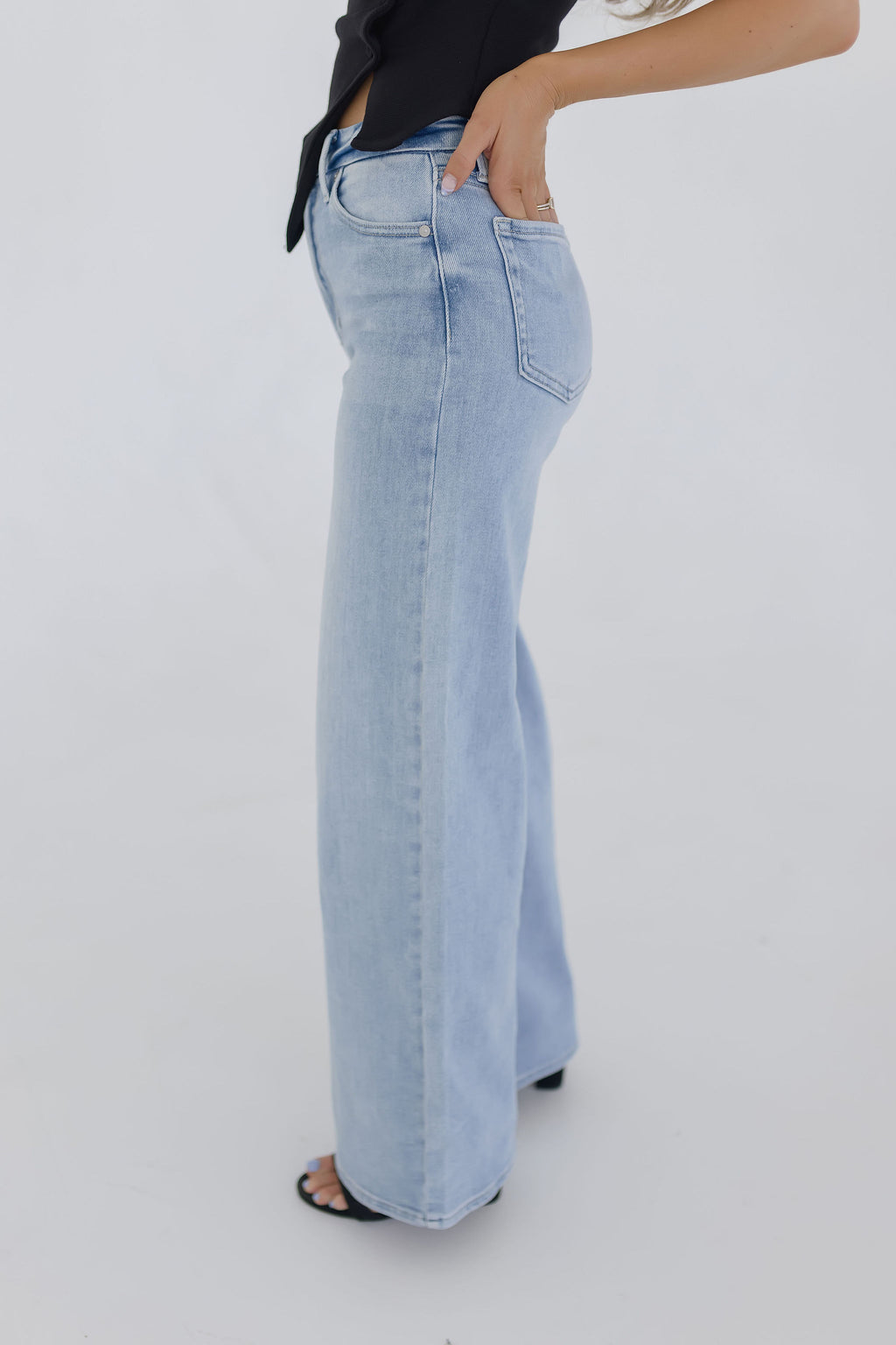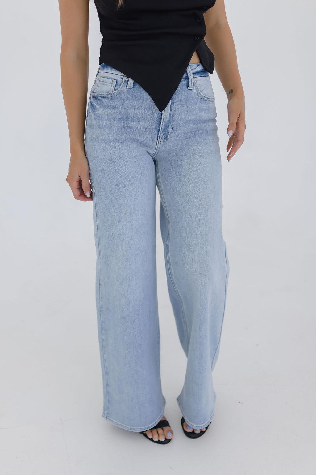 Ariana High Rise Cuffed Wide Leg Jeans Light Wash