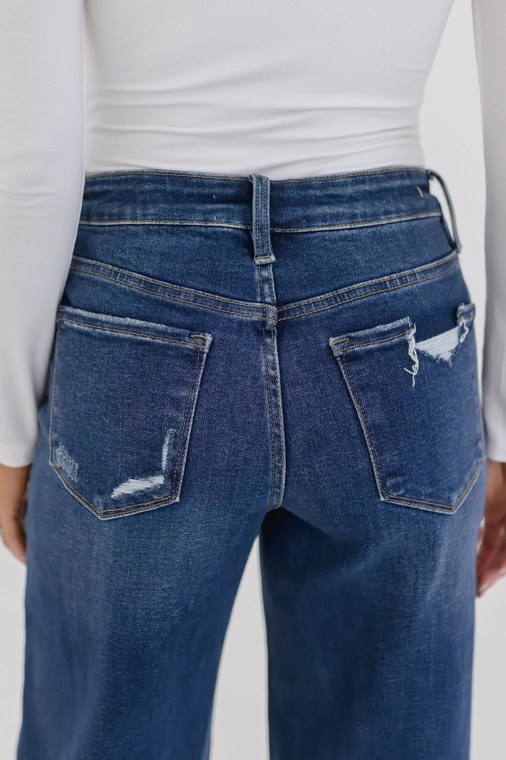 Becca Mid Rise Wide Leg Jeans Dark Wash