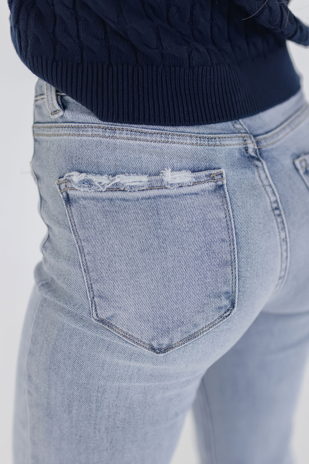 Alia High Rise Distressed Straight Leg Jeans Light Wash