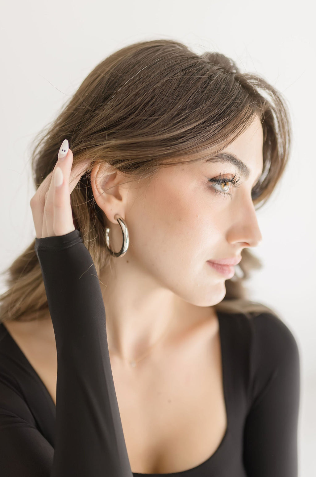 Lots of us lie somewhere in the middle between simple studs and statement earrings. In that case, you can always opt for a classic and elegant gold or silver hoop.