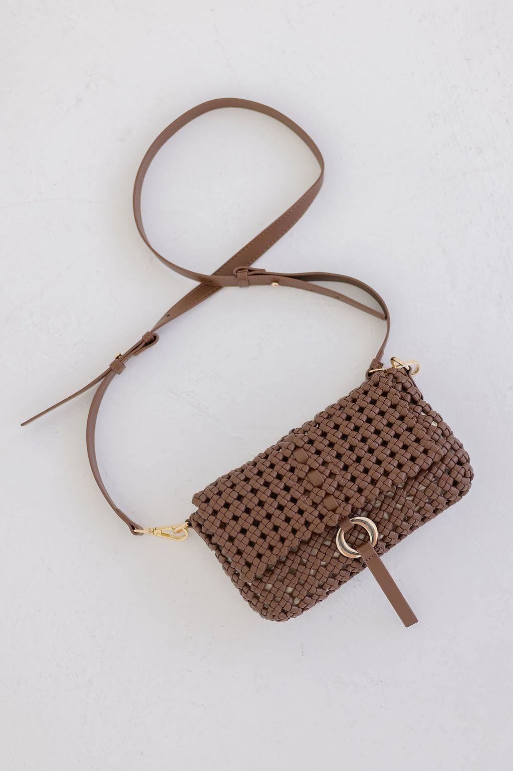 Annalise Top Handle Faux Leather Woven Handbag Brown