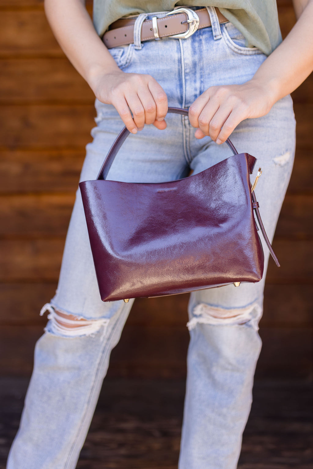 Cecily Shoulder Bag Faux Suede Handbag Burgundy