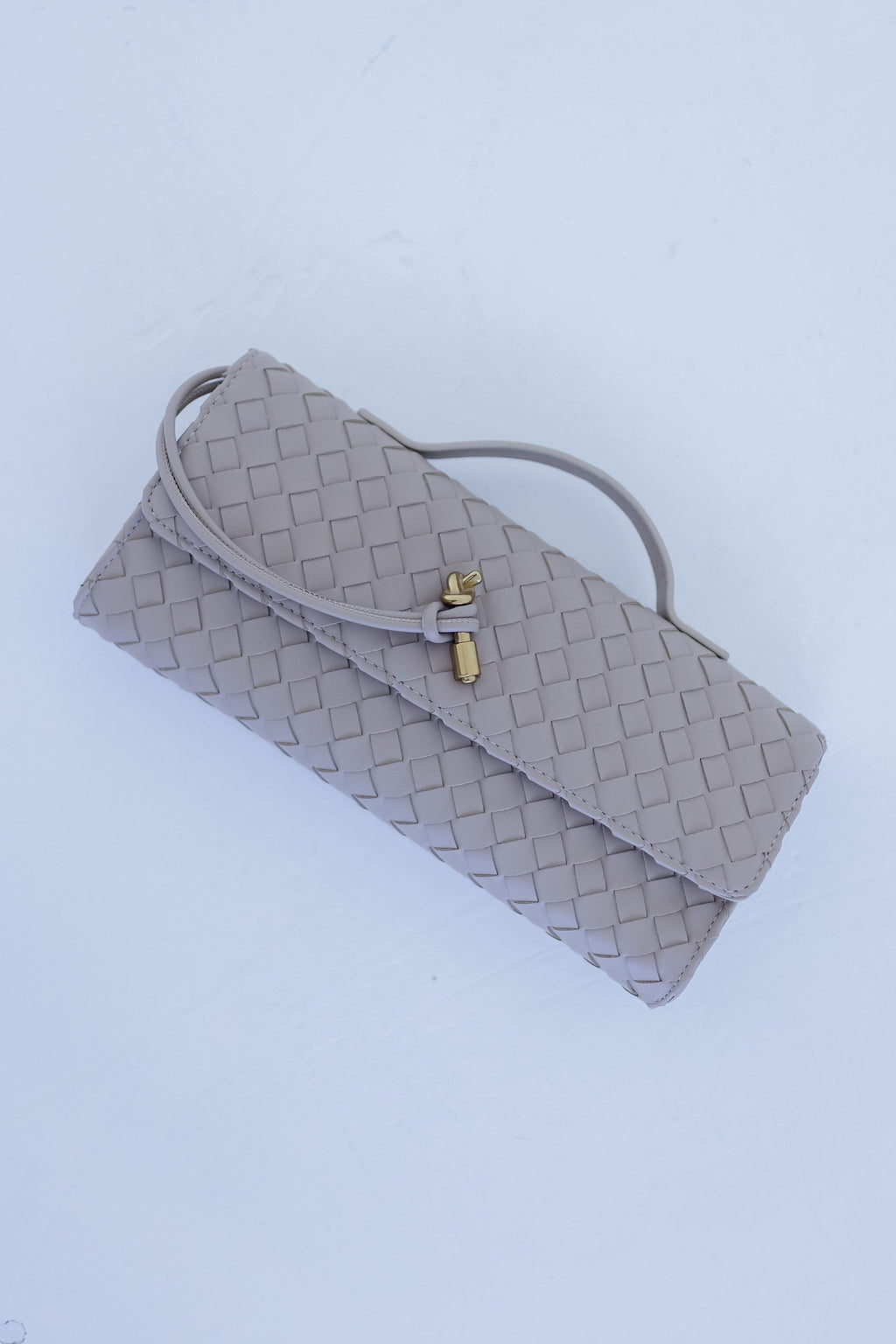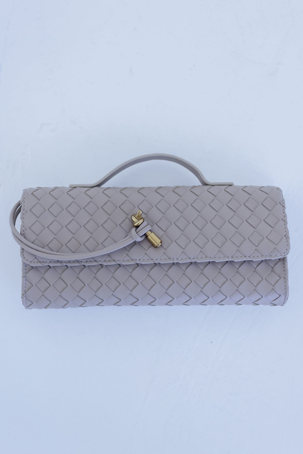 Tyra Top Handle Faux Leather Woven Handbag Taupe