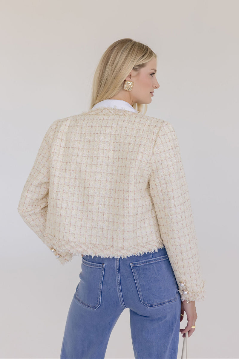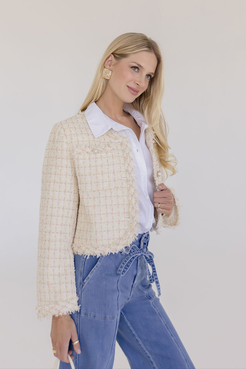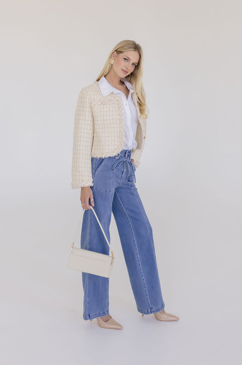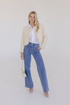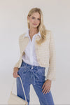Waitlist 12/28 • Clarissa Long Sleeve Cable Knit Denim Trim Shacket Cream