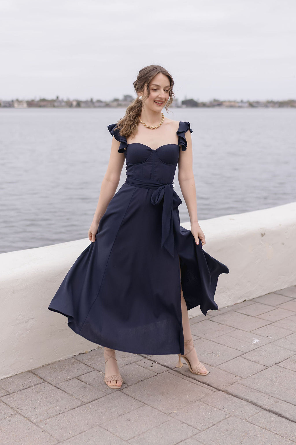 Isadora High Waist Floral Print Linen Wrap Midi Skirt Black