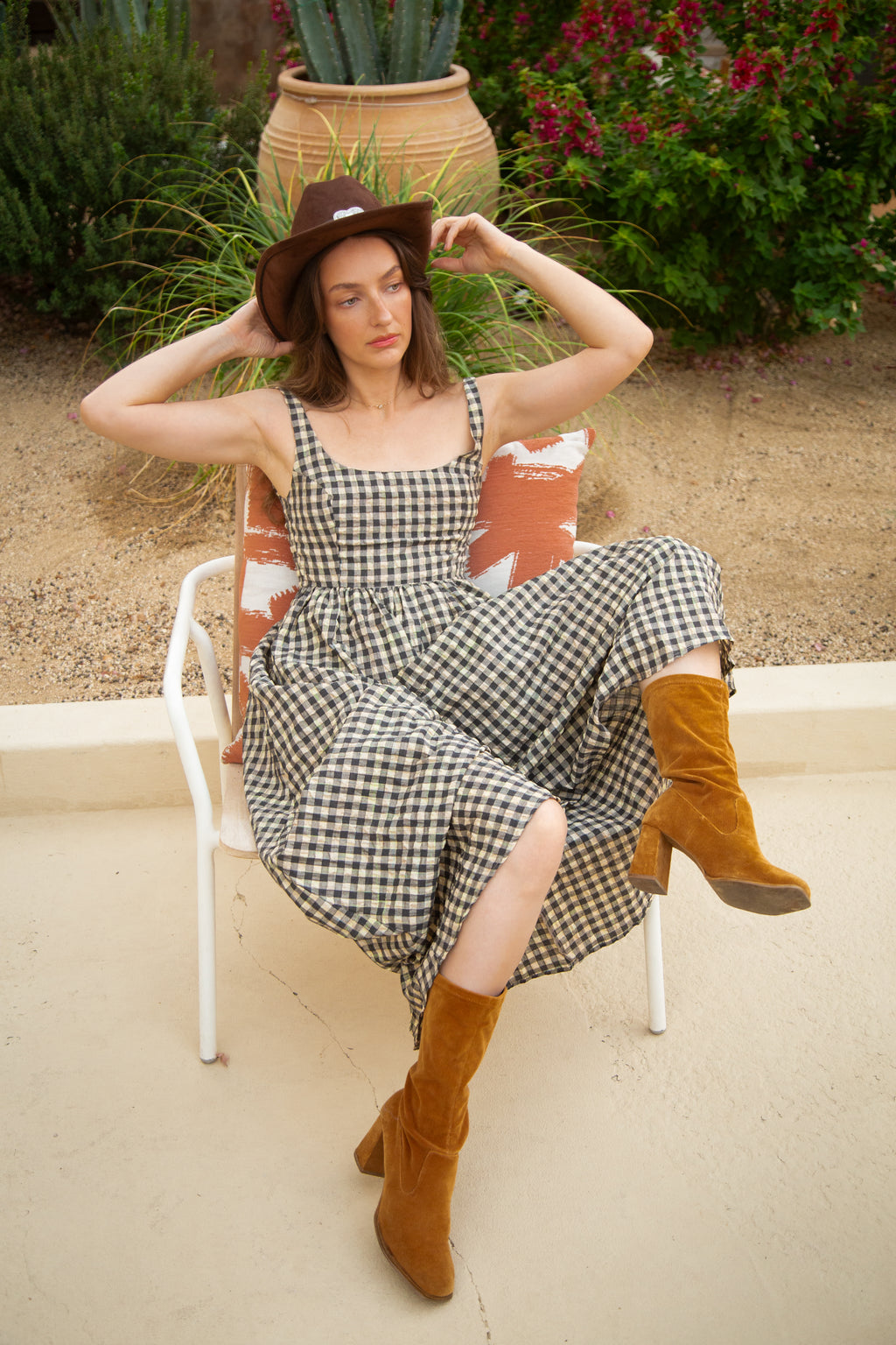 Kacie Sleeveless Checkered Print Maxi Dress Natural