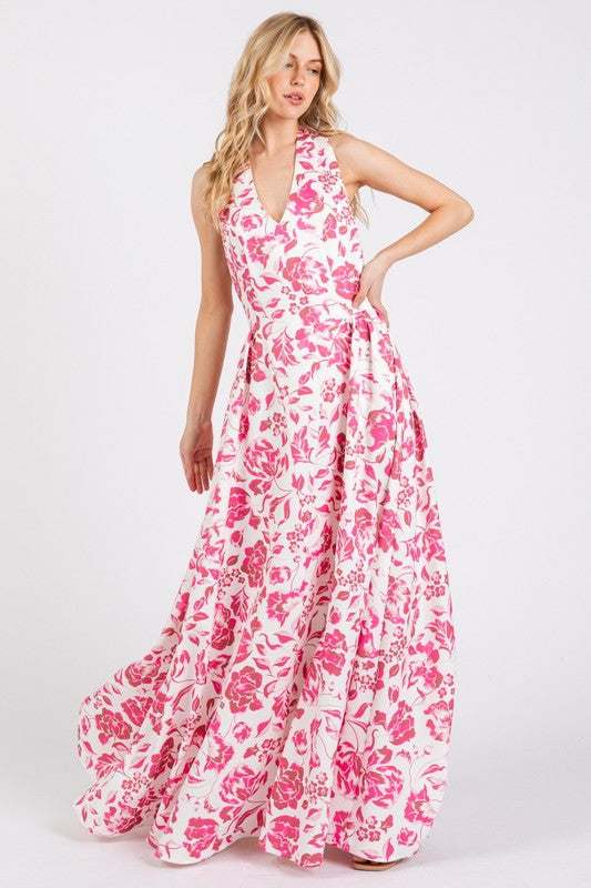 Sabrina Sleeveless Halter Floral Print Maxi Dress Black