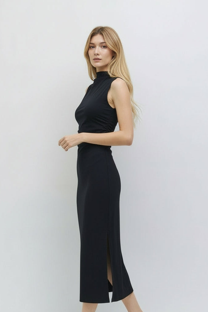 Taylor Sleeveless Mock Neck Bodycon Midi Dress Black