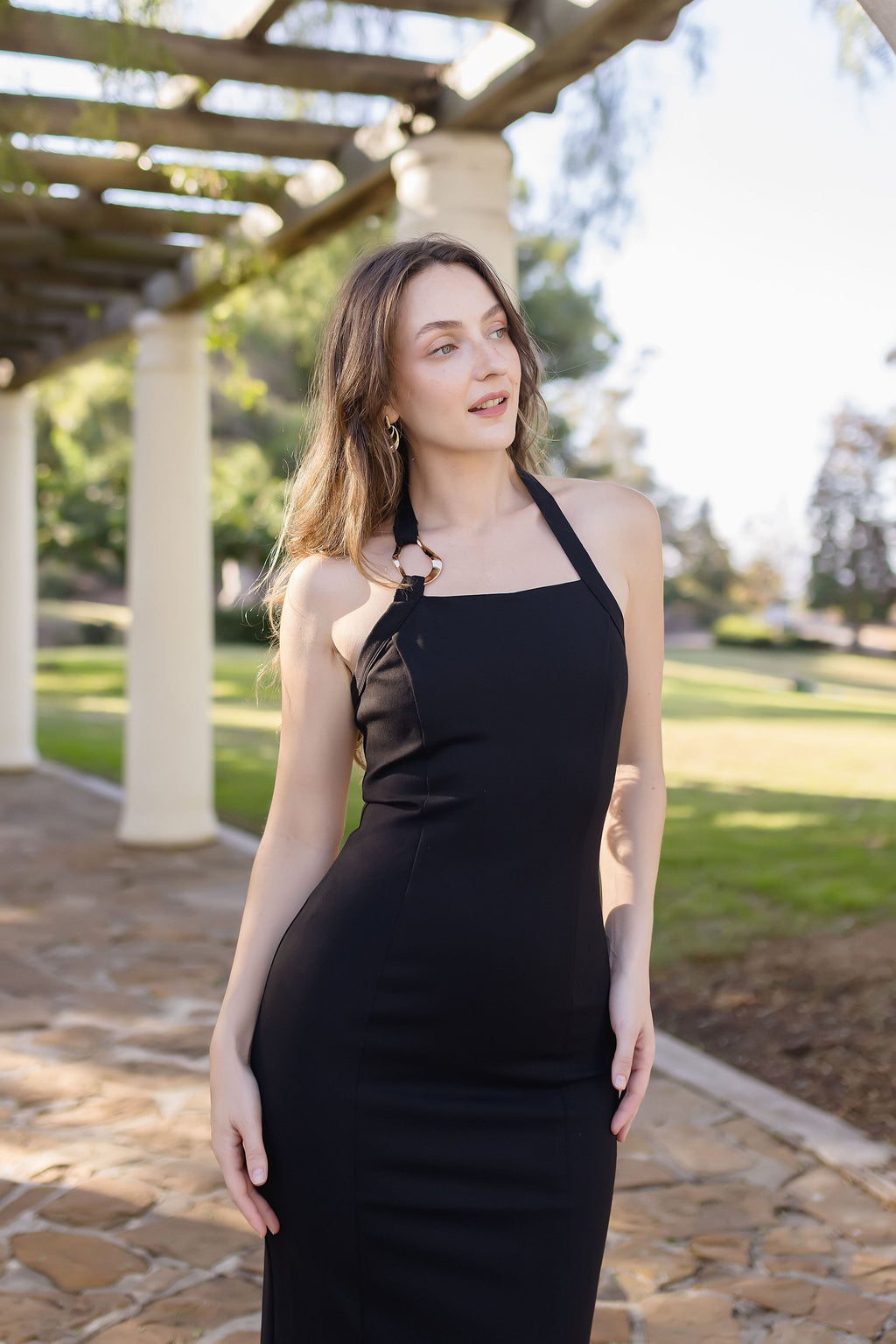 Shirley Sleeveless A-Line Belted Midi Dress Black