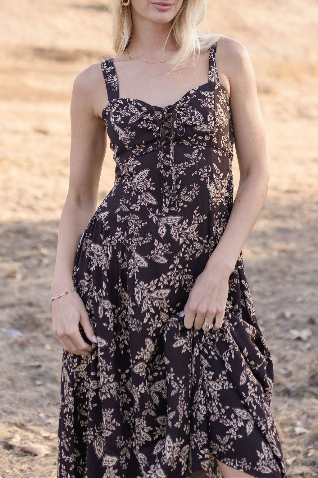 Adalyn Sleeveless Floral Print Midi Dress Brown