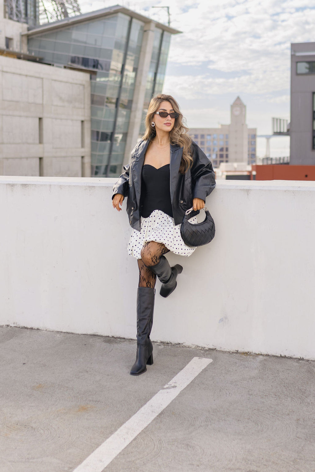 Reese Sleeveless Polka Dot Print Bubble Mini Dress Black