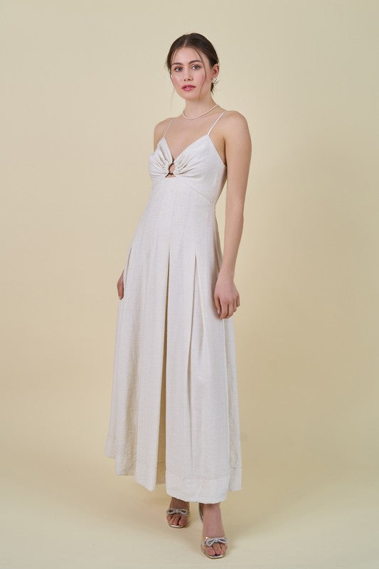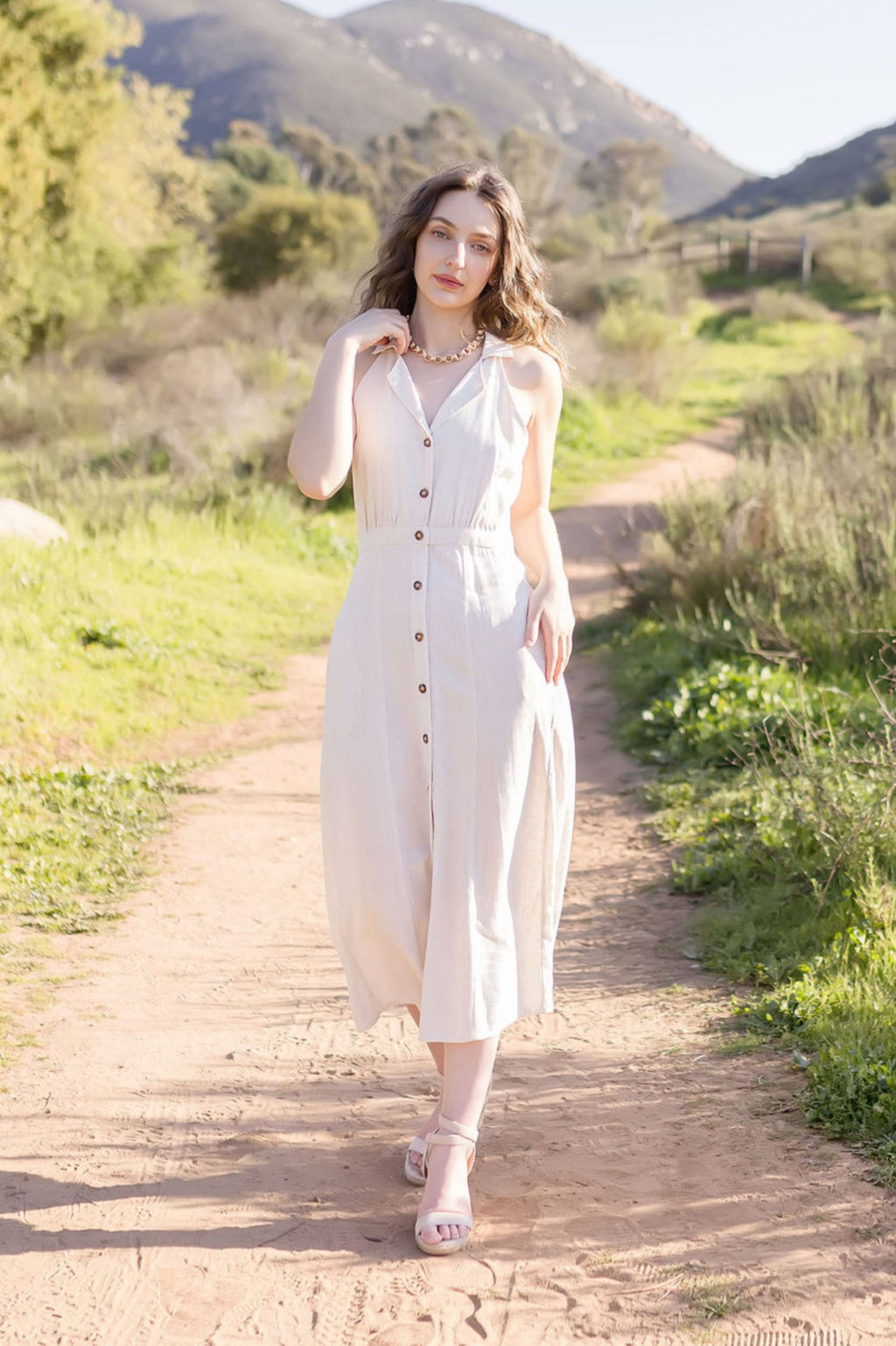 Samantha Sleeveless Contrast Linen Midi Dress Natural