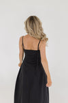 Sleeveless Lace Bodice Satin Midi Dress Black