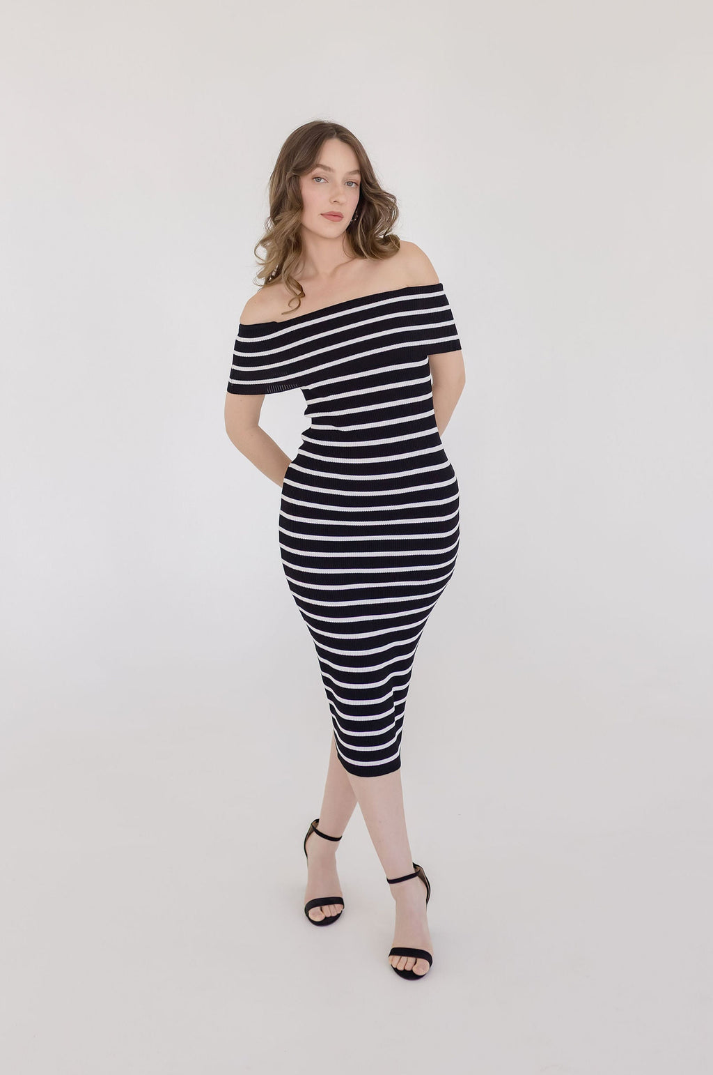 Wanda Sleeveless Stripe Print Midi Dress Black