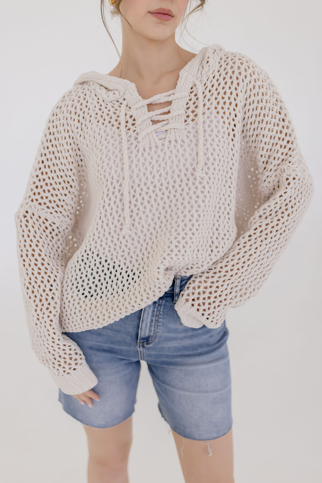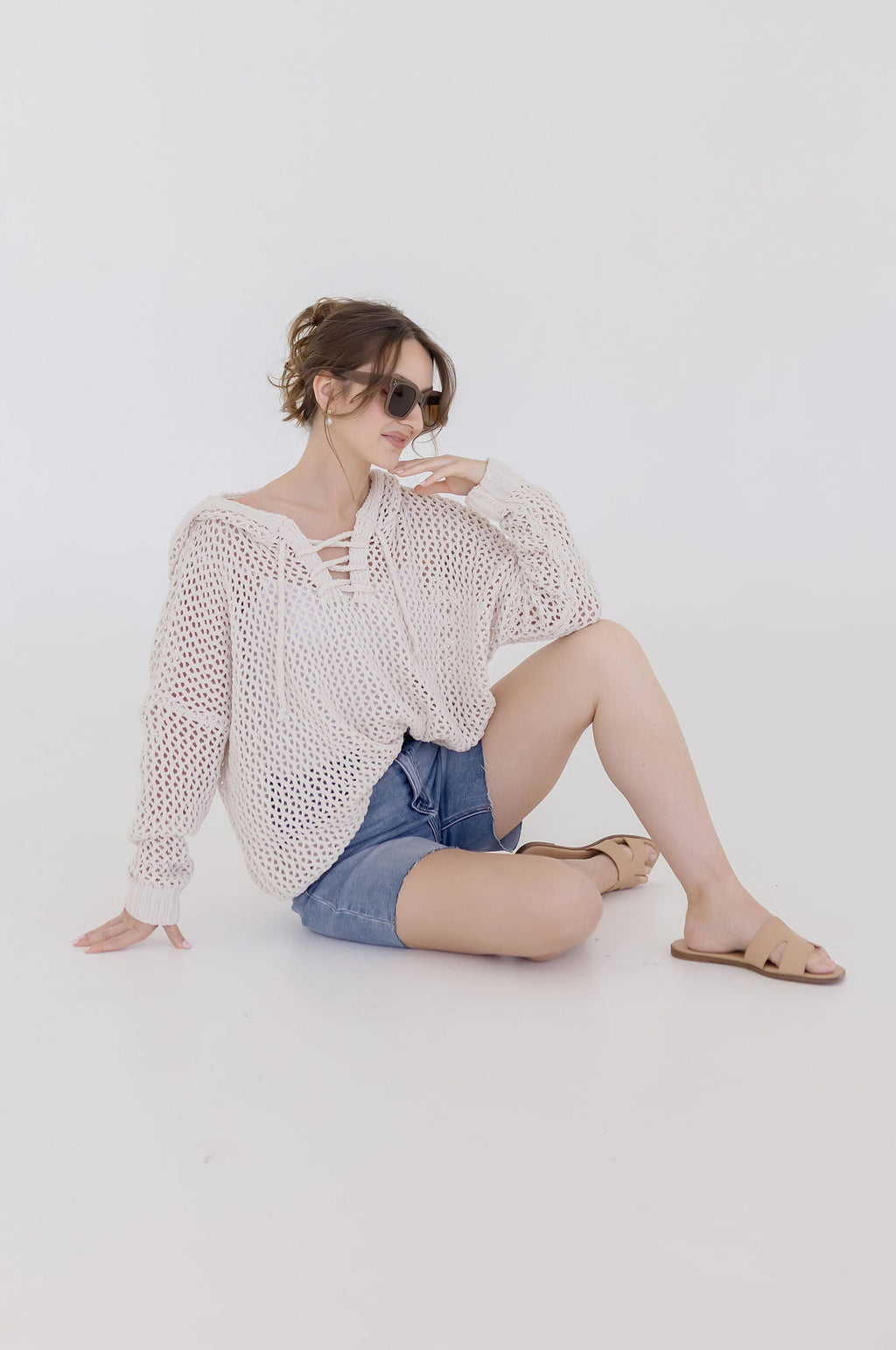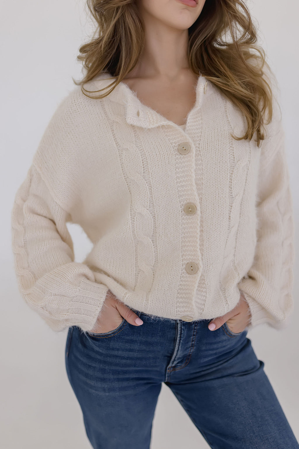 Waitlist 12/28 • Clarissa Long Sleeve Cable Knit Denim Trim Shacket Cream