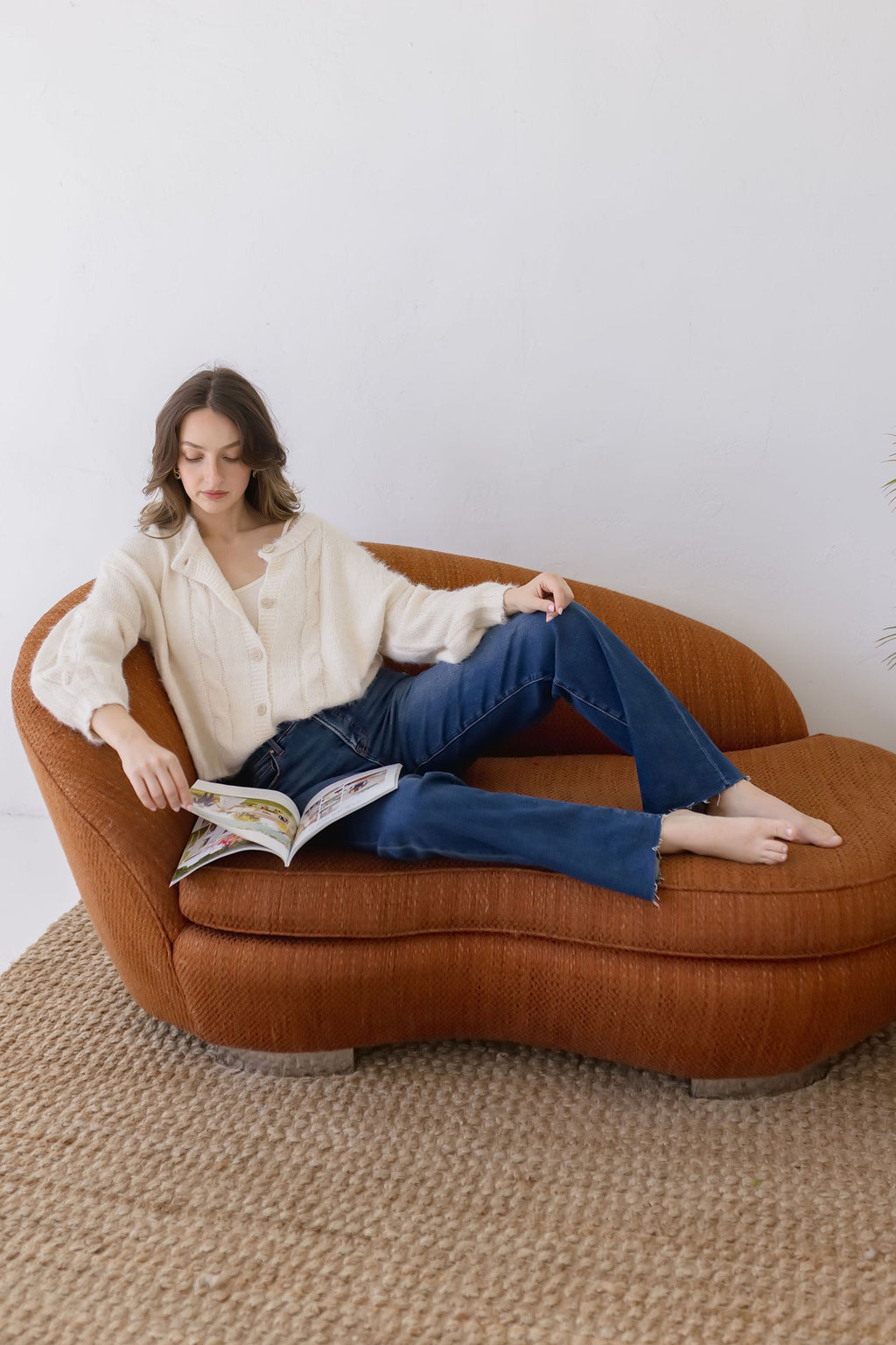 Vienna Long Sleeve Button Down Frayed Cardigan Red
