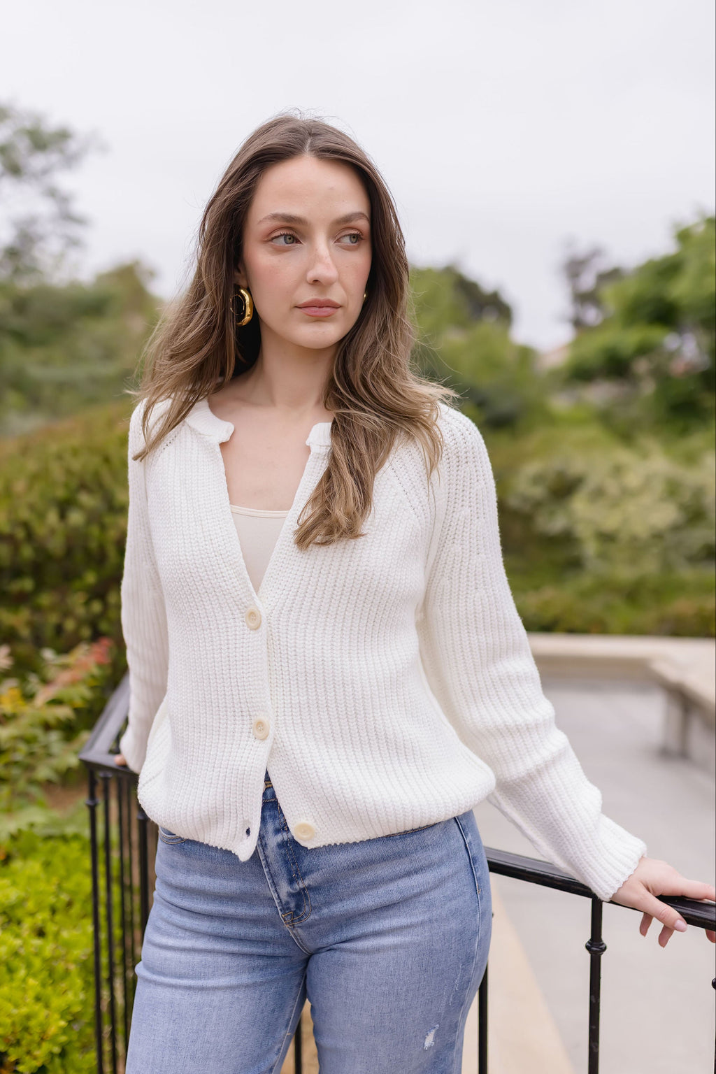 Eloise Long Sleeve Ruffle Floral Print Crop Cardigan Ivory