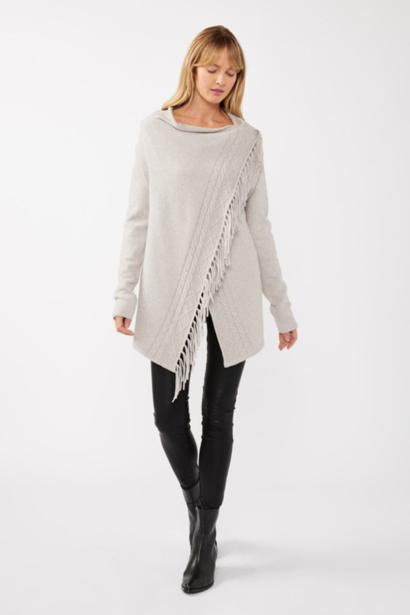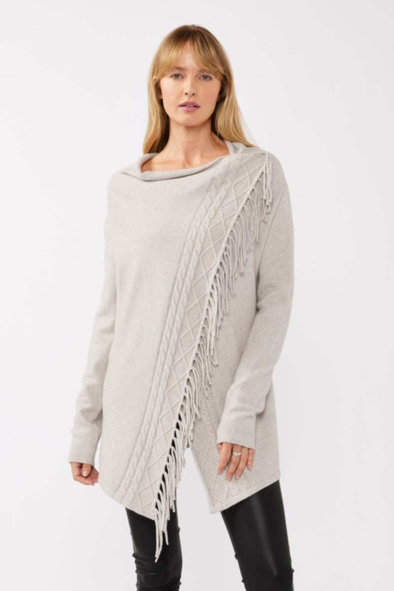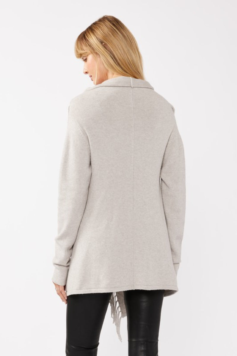 Dallas Long Sleeve Cowl Neck Fringe Cardigan Grey