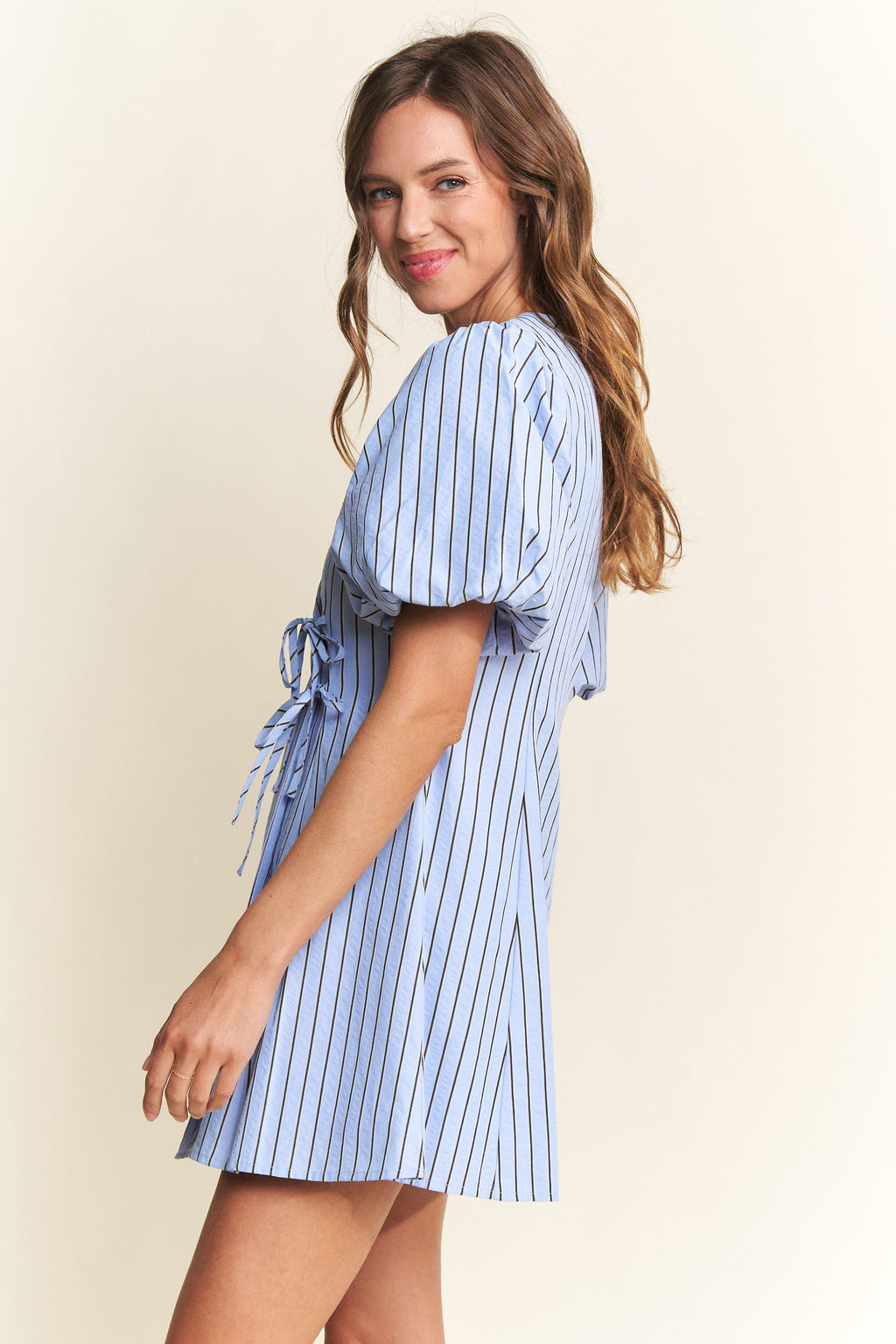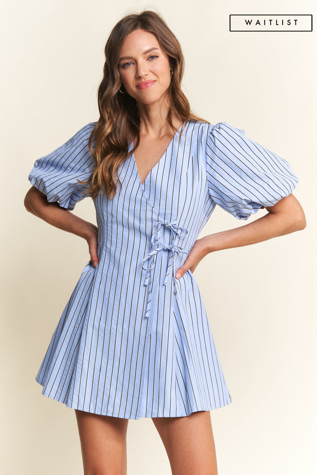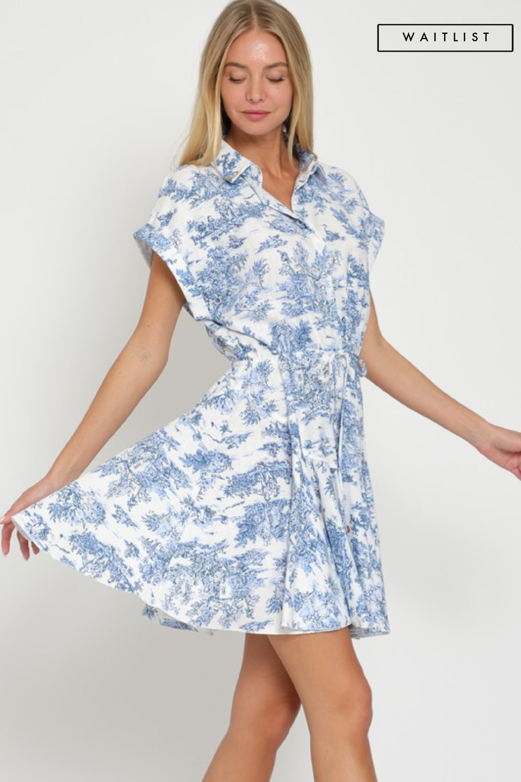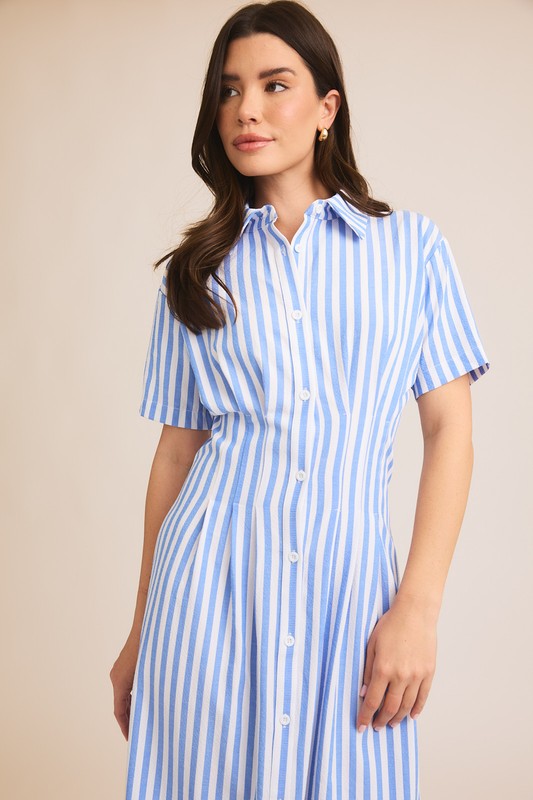 Waitlist 1/20 • Charlie Long Sleeve Belted Button Down Stripe Print Linen Mini Dress Blue