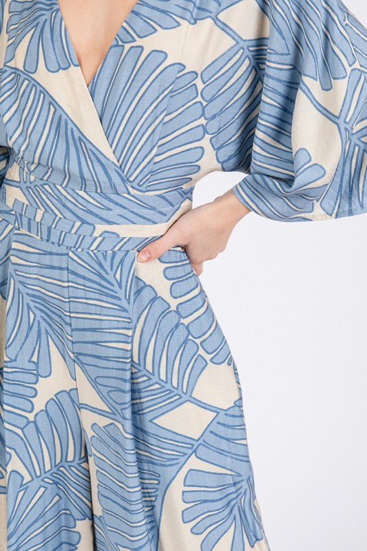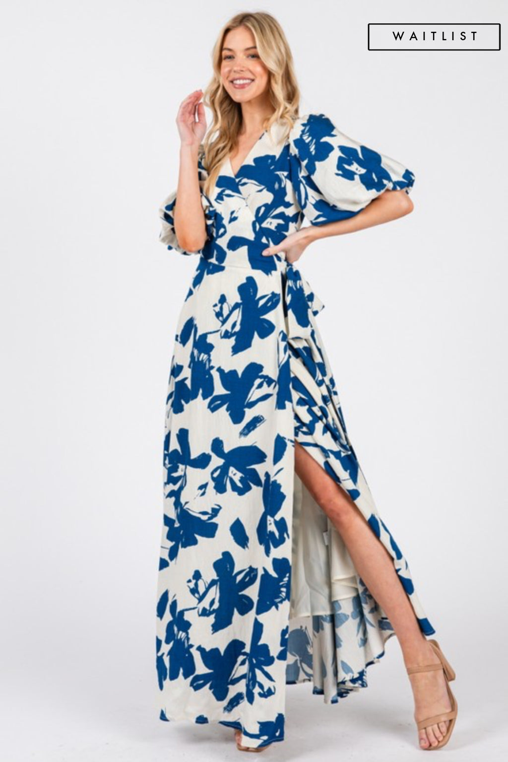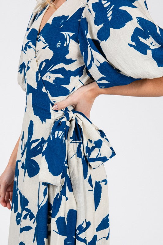 Waitlist 1/25 • Hensley Short Bubble Sleeve Floral Print Wrap Maxi Dress Navy