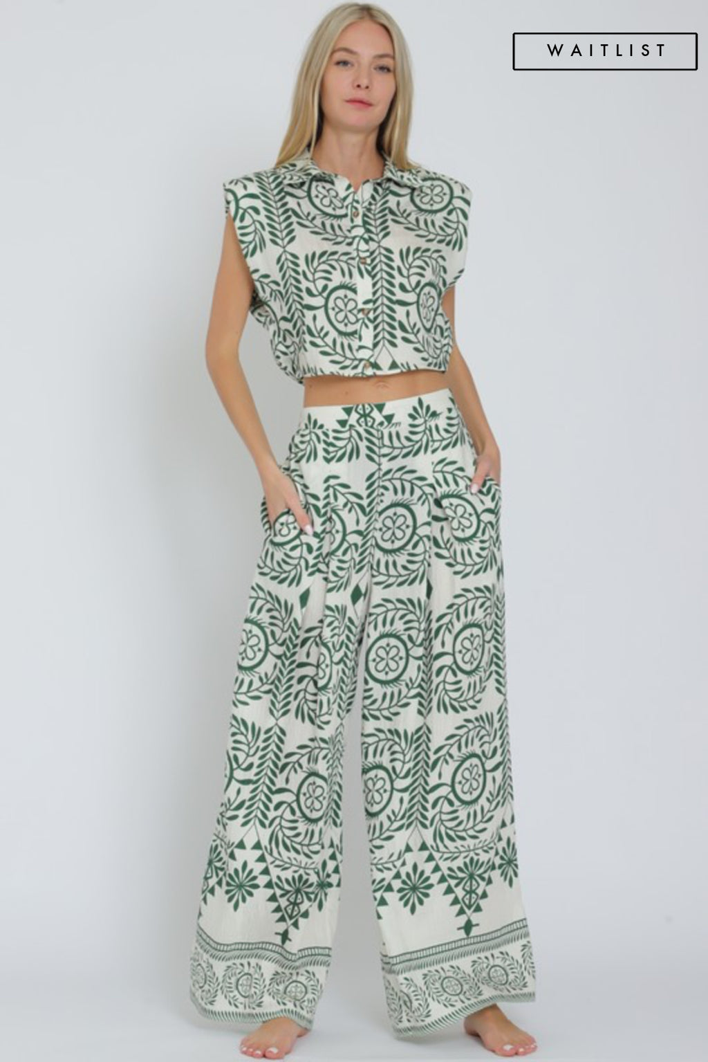 Waitlist 2/10 • Maya High Waist Wide Leg Tropical Print Pants Green