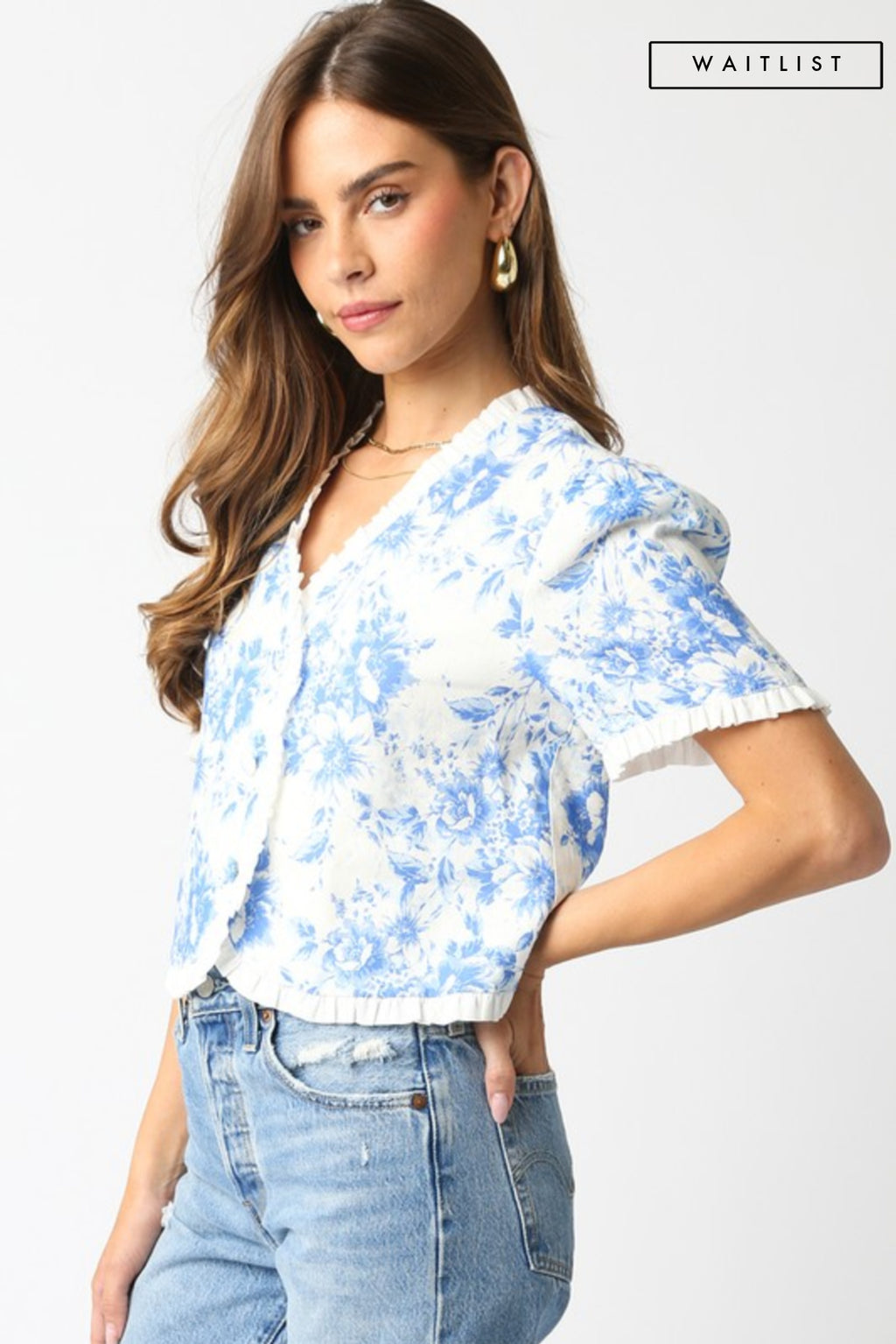 Waitlist 1/7 • Rhiannon Long Sleeve Button Down Floral Print Woven Top Ivory