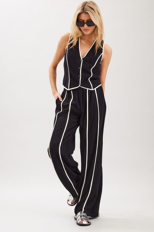 Harley Sleeveless Draped Top And Wide Leg Pants Set Navy