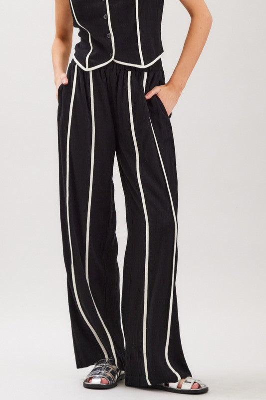 Waitlist 1/25 • Lana Knit Waist Wide Leg Stripe Print Pants Blue