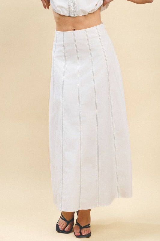Tova High Waist Floral Embroidered A-Line Midi Skirt Cream