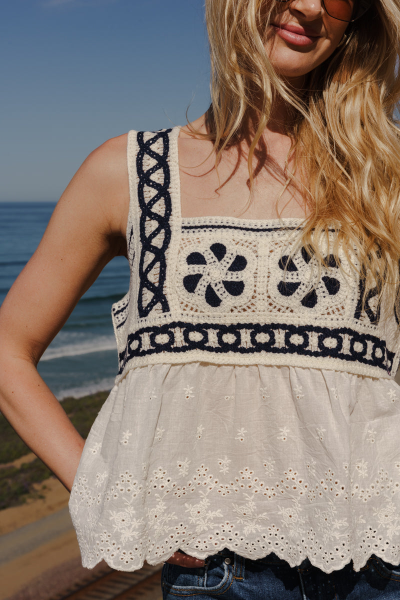 Waitlist 6/10 • Kenza Sleeveless Crochet Cami Top Cream