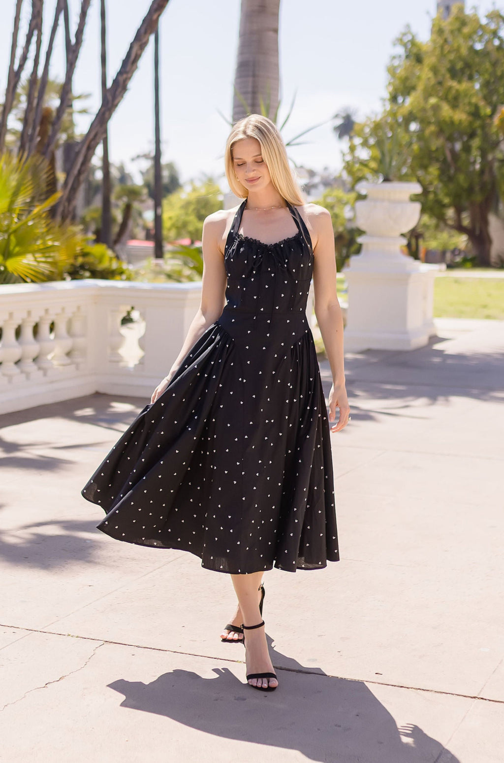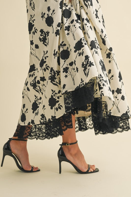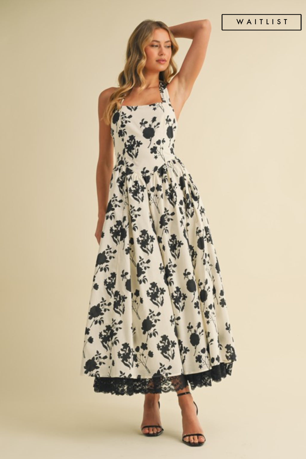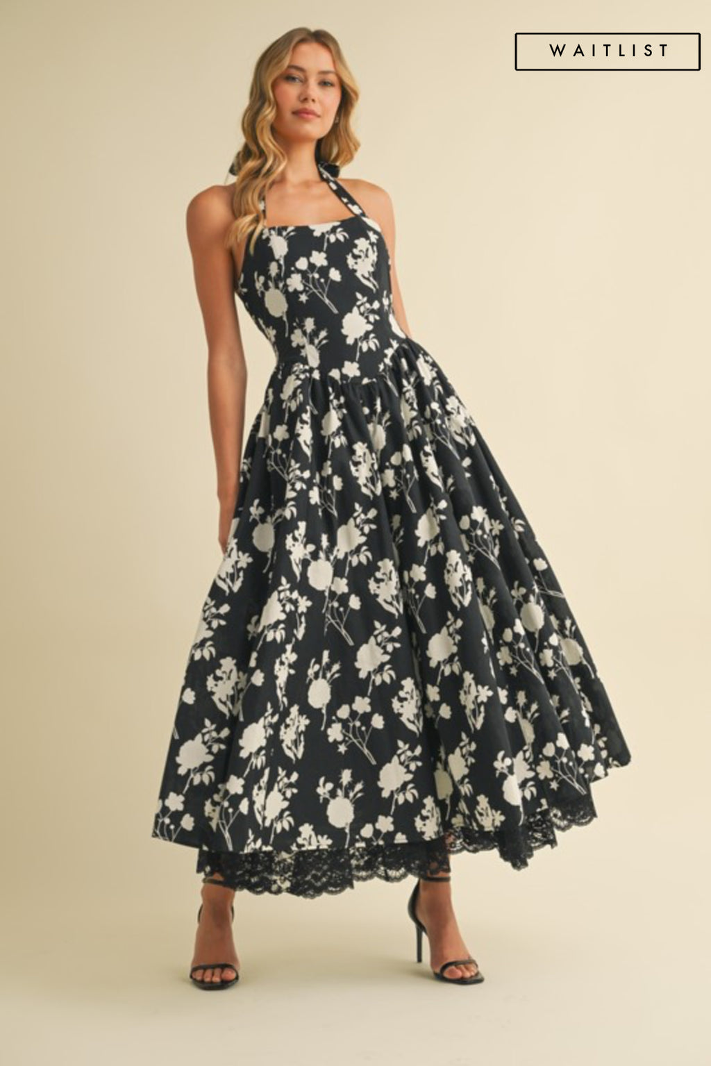 Sabrina Sleeveless Halter Floral Print Maxi Dress Black