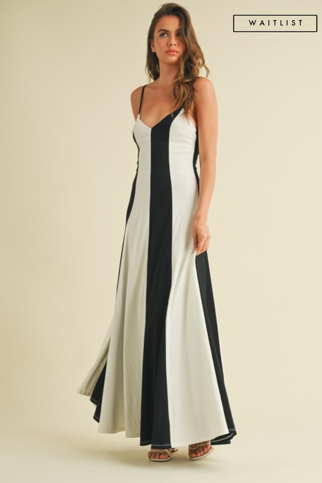 Samantha Sleeveless Contrast Linen Midi Dress Black