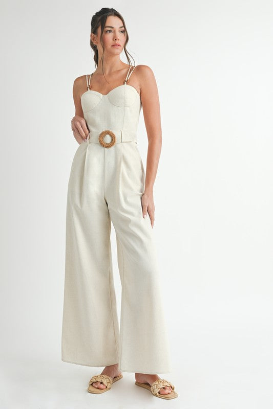 Waitlist 2/10 • Faith Sleeveless Belted Button Front Wide Leg Jumpsuit Rust