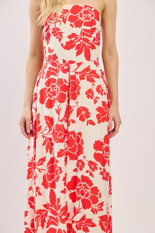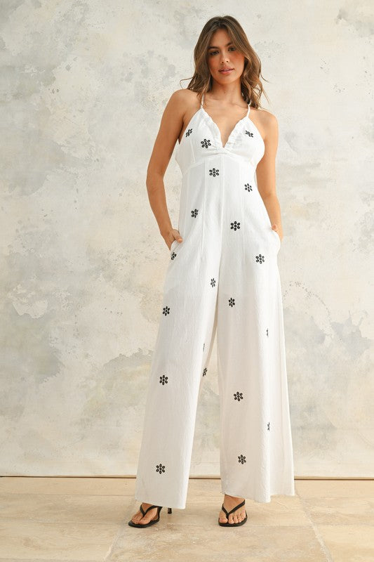 Amy Sleeveless Back Tie Floral Print Wide Leg Jumpsuit Brown